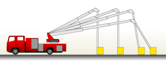 ワンサイドのアウトリガーでも十分な安定性を確保。他の車両等の障害物のある現場や、狭い路地など最小限のスペースで高所での消火・救難活動を行うことが可能です。